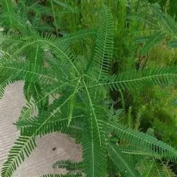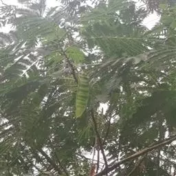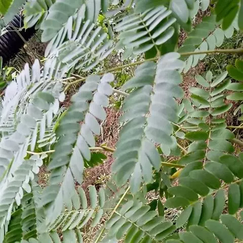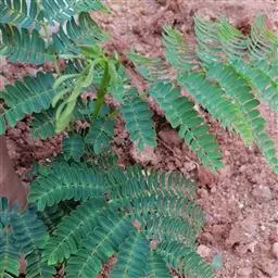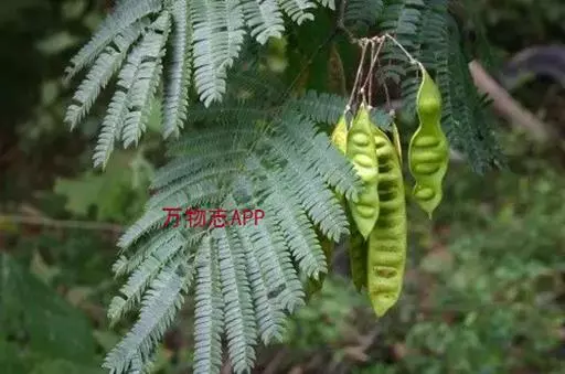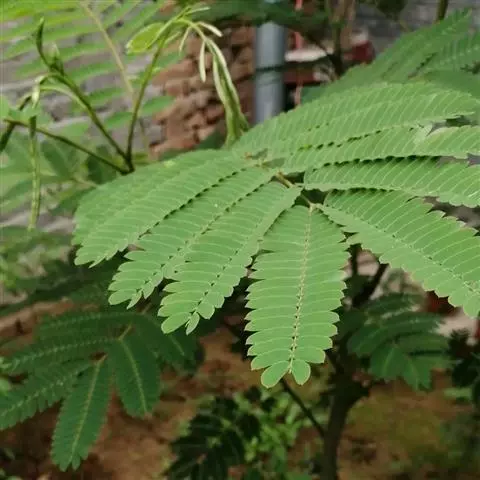 托叶线状披针形,较小叶小,早落;二回羽状复叶,互生;总叶柄长3-5cm,总花柄近基部及最顶1对羽片着生处各有一枚腺体;羽片4-12对,栽培的有时达20对;小叶10-30对,线形至长圆形,长6-12mm,宽1-4mm,向上偏斜,先端有小尖头,有缘毛,有时在下面或仅中脉上有短柔毛;中脉紧靠上边缘。