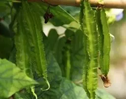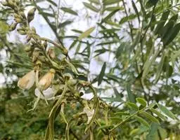 荚果带状,长9-15cm,宽1.5-2.5cm,嫩荚有柔毛,老荚无毛。花期6-7月;果期8-10月。