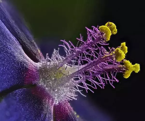 头状花序在枝顶排成圆锥大辩论花序;花粉红色;花萼管状,长3mm;花冠长8mm,裂片三角形,长1.5mm,花萼、花冠外均被短柔毛;雄蕊多数,基部合生,花丝细长;子房上位,花柱几与花丝等长,柱头圆柱形。