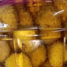 1.选料:选用中只、细皮、厚肉、黄色的橄榄坯。先将果坯轻轻敲至微裂,以便于糖液渗入。