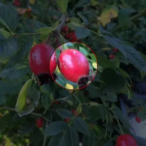 蔷薇属植物的果实都较小,玫瑰果也不例外。果实大小类似于樱桃,平均粒重3.5g左右。玫瑰果果皮和果肉颜色为红色或红黄色,果皮较薄;果肉包裹着果籽,与果籽有绒毛相连,果肉占果实的比重达63%。但由于每颗玫瑰果内都有15粒~40粒稻米大小的果籽,籽肉不易完全分离,所以鲜食不太方便。玫瑰果营养价值较高,适宜进行一定程度加工后食用。