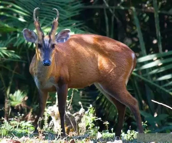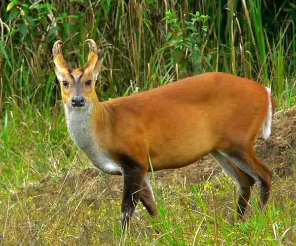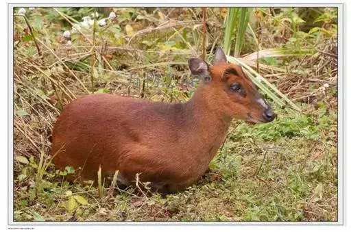 赤麂(jǐ)(学名:Muntiacus muntjak):为麂类中体形最大一种,体长约1米,尾长17-21厘米,体重25-30千克。