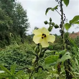 黄蜀葵 Medicus),是锦葵科秋葵属一年生或多年生草本。全株疏被长硬毛;叶近圆形,…