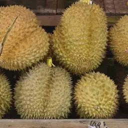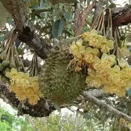 榴梿,是一种锦葵目、木棉科巨型的热带常绿乔木,叶片长圆,顶端较尖,聚伞花序,花色淡黄,果实足球大小…