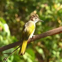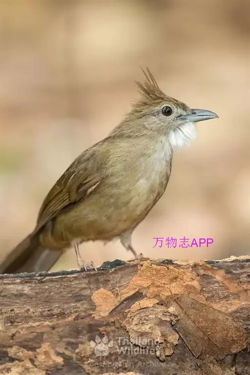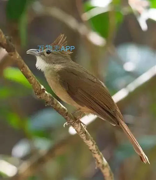 白喉冠鹎(学名:Alophoixus pallidus):体长20-25厘米。头顶红褐色,有长而细的羽冠、红褐色,头侧灰色。上体橄榄绿黄色,飞羽暗褐色,外翈茶黄色,尾下覆羽皮黄色。