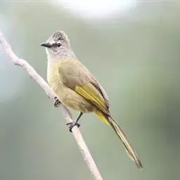 黄绿鹎,小型鸟类,体长19-22厘米。额至头顶暗褐具灰色羽缘,眼先黑色,…