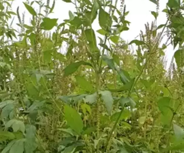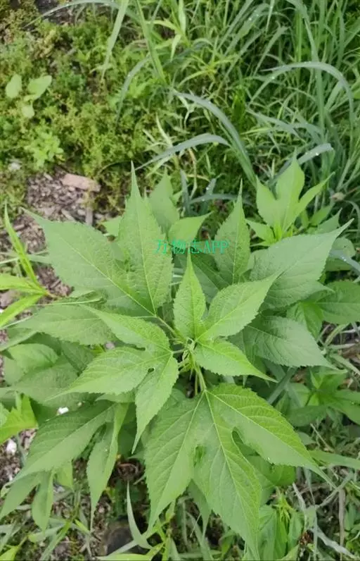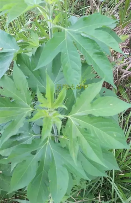 三裂叶豚草是一年生粗壮草本植物,高50-120厘米,有时可达170厘米,有分枝,被短糙毛,有时近无毛。叶对生,有时互生,具叶柄,下部叶3-5裂,上部叶3裂或有时不裂,裂片卵状披针形或披针形,顶端急尖或渐尖,边缘有锐锯齿,有三基出脉,粗糙,上面深绿色,背面灰绿色,两面被短糙伏毛。叶柄长2-3.5厘米,被短糙毛,基部膨大,边缘有窄翅,被长缘毛。
