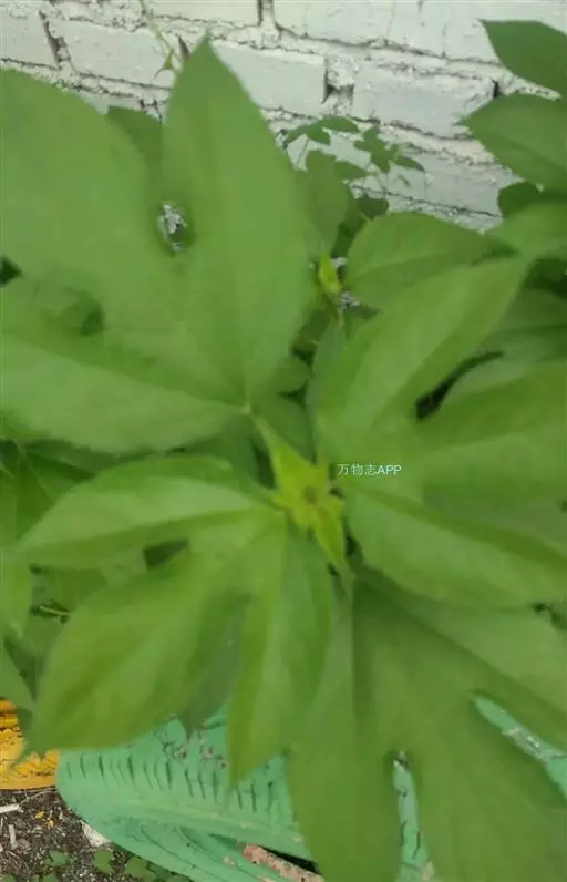 叶子全株对生。叶柄粗壮,长2-5厘米,有密粗毛,叶片很大,长宽均可达6-15厘米,掌状三深裂,有三条强劲的主脉自叶柄顶端发出,有时两个侧生主脉各分出一个同主脉相同粗细的分枝,看上去好象有五条主脉,形成五个裂片,每个裂片短椭圆形,边缘有浅锯齿,顶端渐尖。叶片两面均有短粗毛,叶脉上的毛较长。