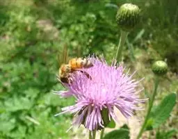 三裂叶豚草(学名:Ambrosia trifida L.):一年生粗壮草本植物,高50-120厘米,有时可达170厘米,有分枝。叶对生,有时互生,具叶柄,下部叶3-5裂,上部叶3裂或有时不裂,上面深绿色,背面灰绿色,两面被短糙伏毛。在枝端密集成总状花序。总苞浅碟形,绿色;总苞片结合,外面有3肋。花托无托片,具白色长柔毛,每个头状花序有20-25不育的小花;小花黄色,长1-2毫米,花冠钟形,上端5裂,雌头状花序在雄头状花序下面上部的叶状苞叶的腋部聚作团伞状,具一个无被能育的雌花。花期8月,果期9-10月。