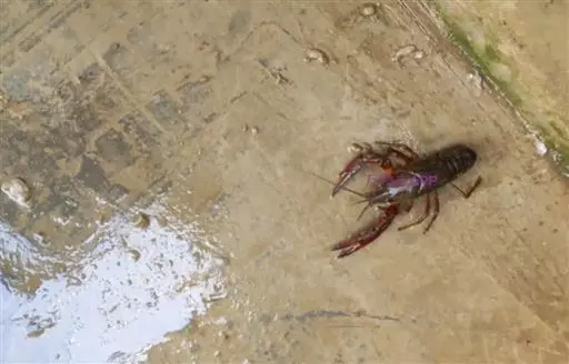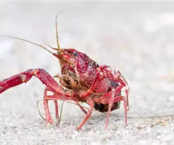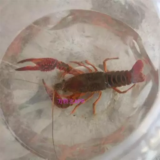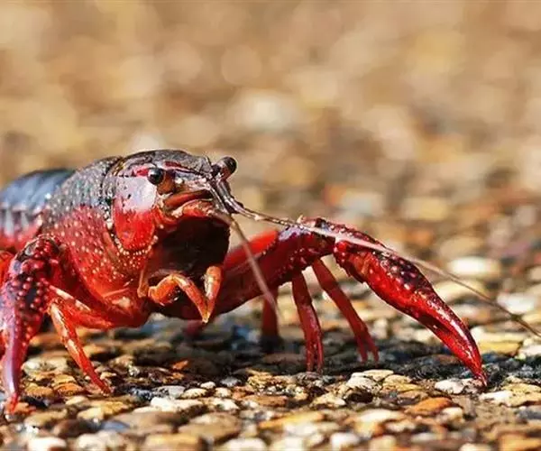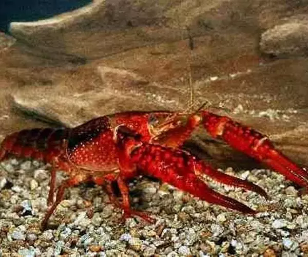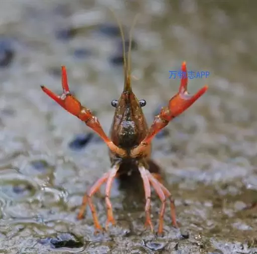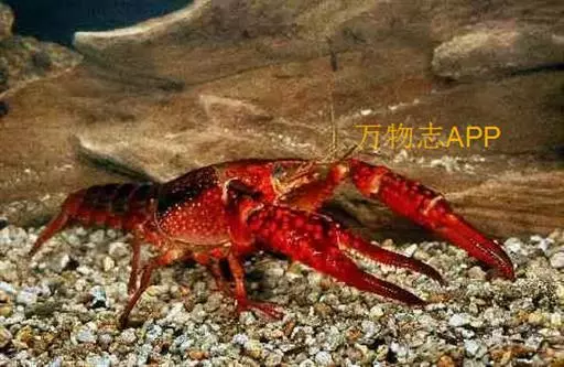 小龙虾(学名:Procambarus clarkii):也称克氏原螯虾、红螯虾和淡水小龙虾。形似虾而甲壳坚硬。成体长约5.6~11.9厘米,暗红色,甲壳部分近黑色,腹部背面有一楔形条纹。幼虾体为均匀的灰色,有时具黑色波纹。螯狭长。甲壳中部不被网眼状空隙分隔,甲壳上明显具颗粒。额剑具侧棘或额剑端部具刻痕。