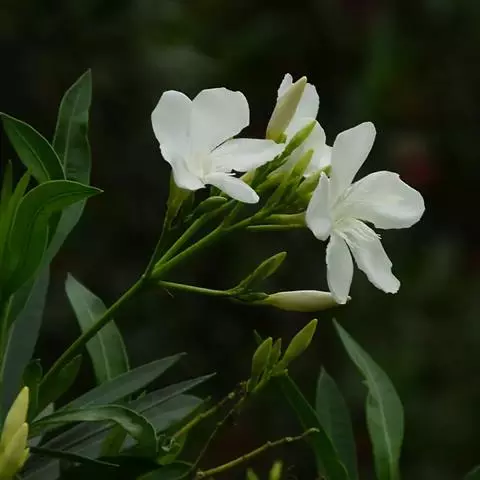 白花夹竹桃是夹竹桃科、夹竹桃属植物夹竹桃的栽培品种。常绿直立大灌木,枝条灰绿色;嫩枝条具稜,被微毛,…