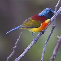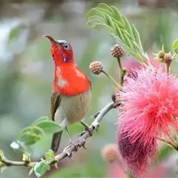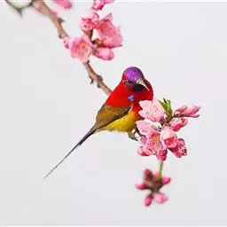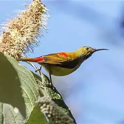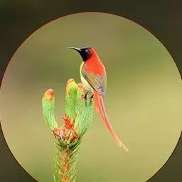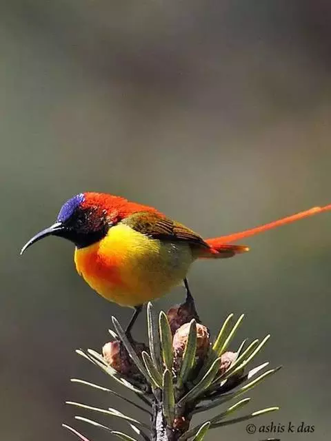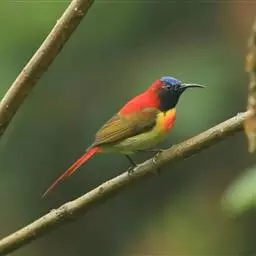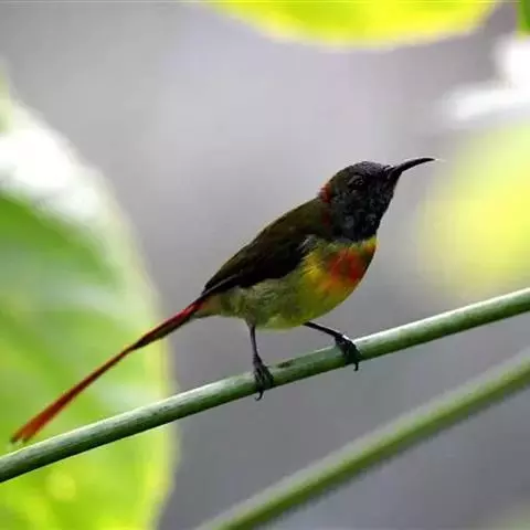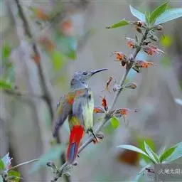 火尾太阳鸟为太阳鸟科太阳鸟属的鸟类。体长20厘米,色彩艳丽。雄鸟红色,具形长的艳猩红色中央尾羽。…
