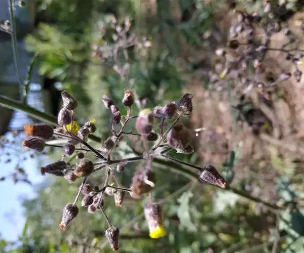果:瘦果圆柱形,长约1毫米,具10条棱,被疏毛。冠毛白色,糙毛状,长约5毫米,不易脱落。
