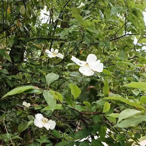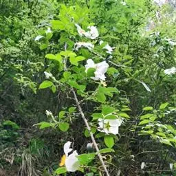 白蔷薇:直立灌木,高约2米;小枝有不等钩状皮刺,有时混有刺毛。小叶通常5,稀7,宽椭圆形或卵形,…