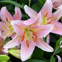 亚洲百合,百合科百合属植物。多年生草本,高30~60厘米。鳞茎卵球形。总状花序,花漏斗状,朝上开放,…