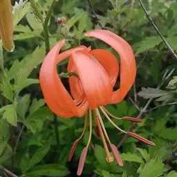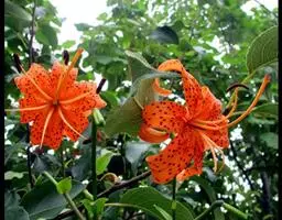 青岛百合(学名:Lilium tsingtauense)又名崂山百合,为多年生单子叶草本植物,原产于中国山东省,是中国百合科植物的特有种。青岛百合花色为橙红色或橙黄色,带淡紫色斑点,由5~7朵单花形成总状花序,花朵星状,花被不反卷,具有轮生叶。该物种集中分布于崂山北九水以南海拔400~1000m的区域内,一般生长于阴坡或半阴坡的森林中。被列入国家第二批稀有濒危植物名录。