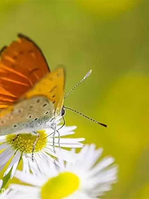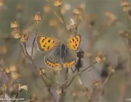 橙灰蝶Lycaena dispar Hauorth,鳞翅目、灰蝶科。这类蝴蝶雌雄异型,雄蝶前翅翅面…