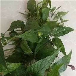 掌状复叶,对生,叶片卵形,渐尖,被细毛,缘具齿,叶柄长。