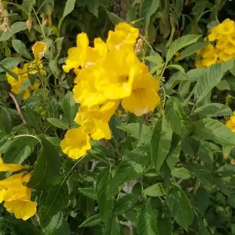 春季约3-4月间开花,花冠漏斗形,也像风铃状,花缘皱曲,花色鲜黄;花季时花多叶少,颇为美丽。果实为蓇葖果,向下开裂,有许多绒毛以利种子散播。花期仅十余天,蓇葖果,开裂时果荚多重反卷,向下开裂,种子带薄翅,有许多绒毛以利种子散播。