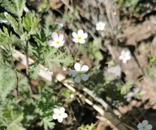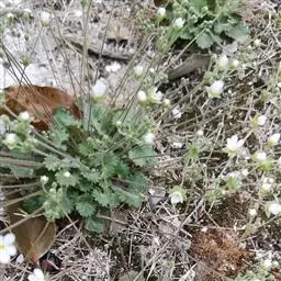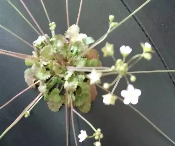 点地梅一年生或二年生无茎草本。全株被节状的细柔毛。主根不明显,具多数须根。叶全部基生,平铺地面;叶柄长1-4cm,被开展的柔毛;叶片近圆形或卵圆形,直径5-2omm,先端钝圆,基部浅心形至近圆形,边缘具三角状钝牙齿,两面均被贴伏的短柔毛。花葶通常数枚自叶丛中抽出,高4-15cm,被白色短柔毛。