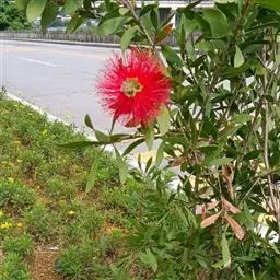 红千层是桃金娘科红千层属的常绿小乔木植物。红千层树皮坚硬,灰褐色,嫩枝有棱,初时有长丝毛,…