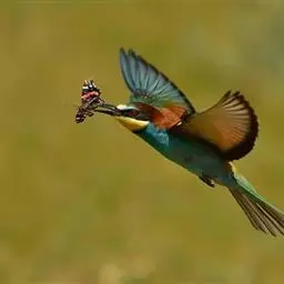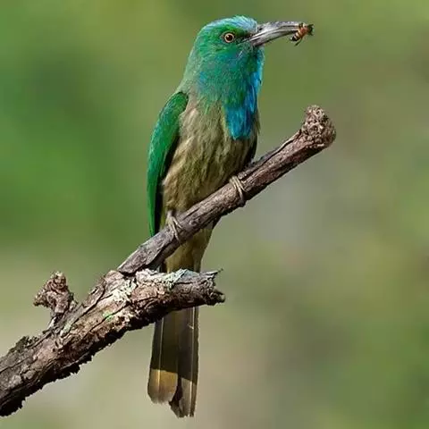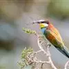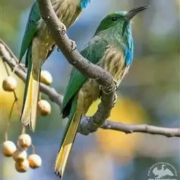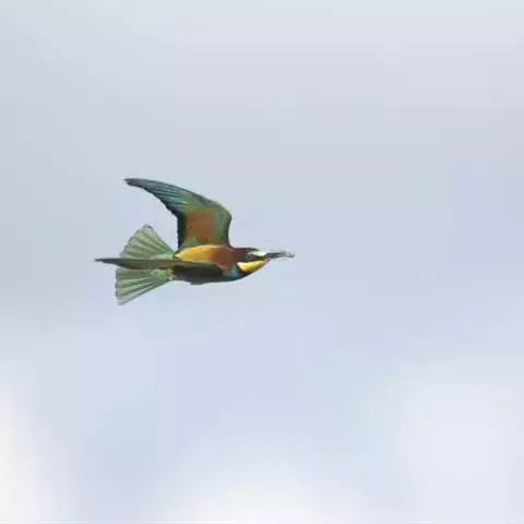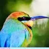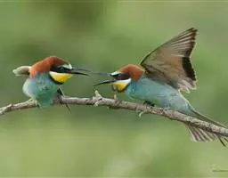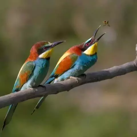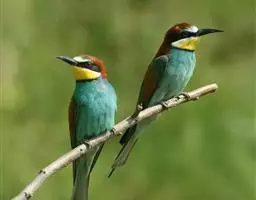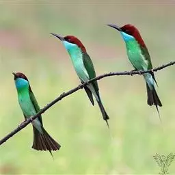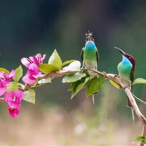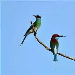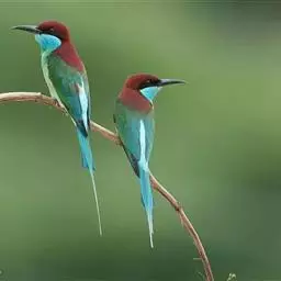 蓝颊蜂虎:是蜂虎科、蜂虎属的鸟类,共有2个亚种。体长27-33厘米,翼展46-49厘米,…