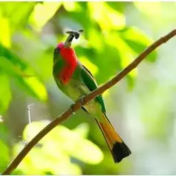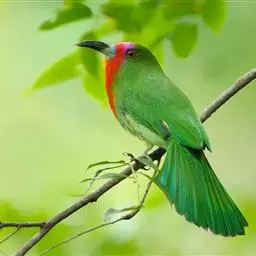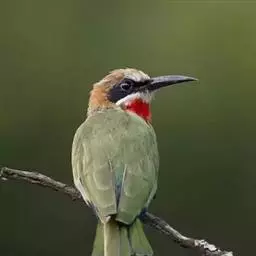 栗喉蜂虎是蜂虎科蜂虎属的鸟类。有热带鸟类羽毛艳丽的特征:喉部是栗红色的,黑色的过眼纹,…