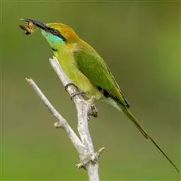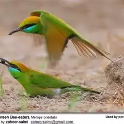 蓝须夜蜂虎(图8) (2种) 1. 蓝须夜蜂虎海南亚种(学名:Merops persicus chrysocercus)分布于撒哈拉沙漠西部边界,从摩洛哥到阿尔及利亚和塞内加尔,乍得,冬天到撒哈拉以南非洲。