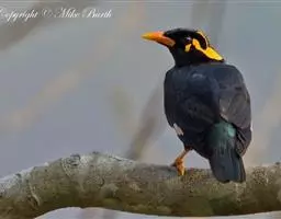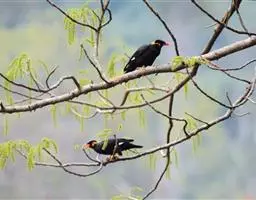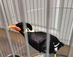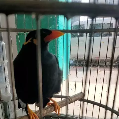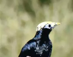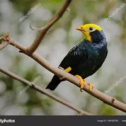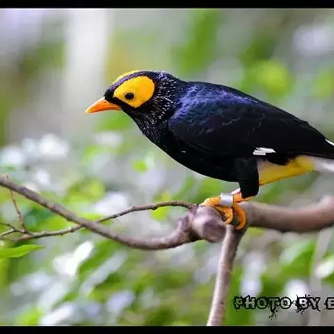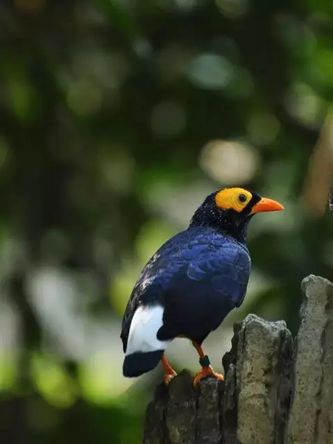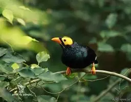 金冠树八哥为椋鸟科树八哥属的鸟类。体长约23厘米,闪辉黑色。特征为具翼斑及颏黄色,脸颊裸露皮肤粉黄色。…