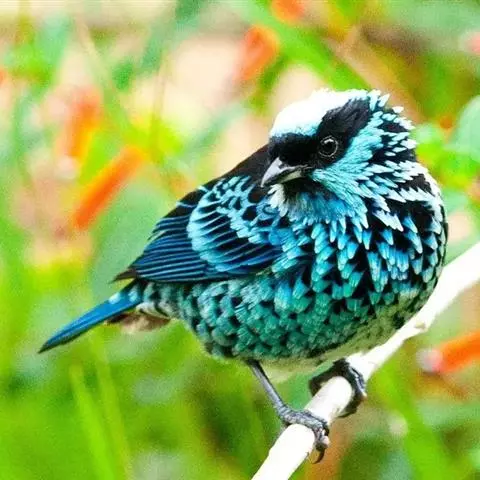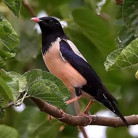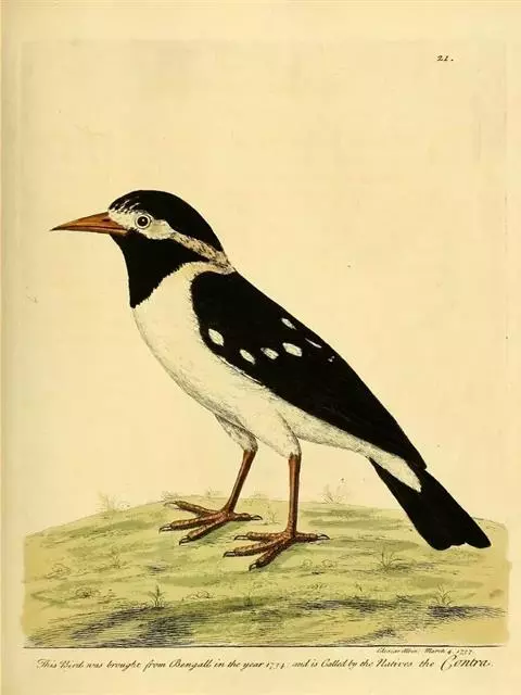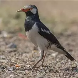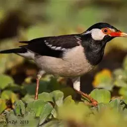 斑椋鸟:是中等体型的黑白色椋鸟,体长24厘米。头顶、头侧、翼斑、腰及腹部白色,喉、胸及上体余部黑色,…