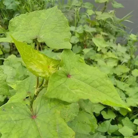 多年生草本。根粗壮,木质化;茎直立,高40-50厘米,自基部分枝,具细纵棱,无毛,茎、枝上部无叶;叶宽卵形或三角形,长2-3厘米,宽1.5-2.5厘米,顶端急尖,基部宽心形或近截形,两面无毛,上面平滑,下面叶脉稍突出,叶柄长可达4厘米;托叶鞘膜质、偏斜,顶端急尖,无缘毛。总状花序呈穗状,由数个总状花序再组成大型,稀疏的圆锥状花序;苞片漏斗状,每苞内具2-3花;花被细弱,长2-2.5毫米,顶部具关节,比苞片长;花被5深裂;花被片椭圆形,长1-1.5毫米;雄蕊8, 与花被近等长。瘦果卵形,具3棱,长2-2.5毫米,有光泽。花期7-8月,果期9-10月。