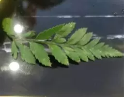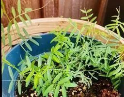 托叶半箭头形,长0.8-2厘米,边缘有3-4裂齿;小叶4-7对,互生或近对生,椭圆形至卵披针形,长1.3-4厘米,宽0.5-1.8厘米;先端圆,微凹,基部近圆形,上面被贴伏长柔毛,下面粉白色;沿中脉毛被较密,侧脉扇状展开直达叶缘。