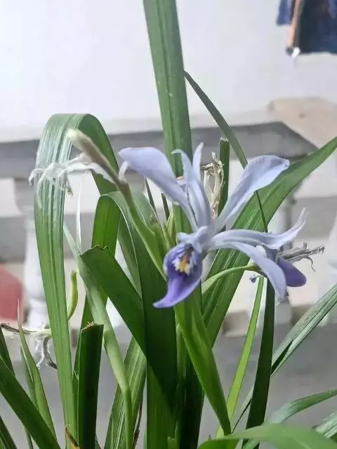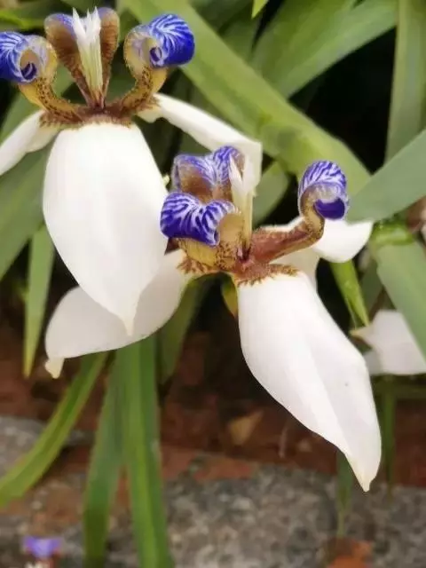 大扁竹兰扇形鸢尾,多年生草本,根茎横生,粗壮,黄白色,节明显;叶黄绿色,集生茎顶,叶片宽剑形,花蓝…