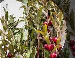 核果扁球形或球形,直径12-15毫米,鲜红色,果肉浅黄色,味酸,粘核;核球形,褐色,直径7-8毫米。花期4-5月,果期6-7月。2n=32。
