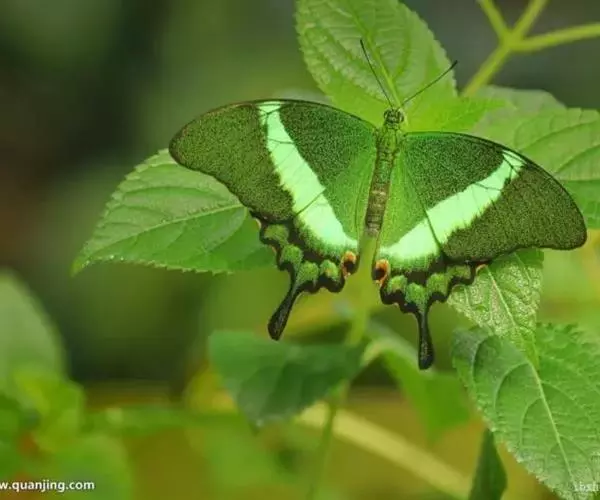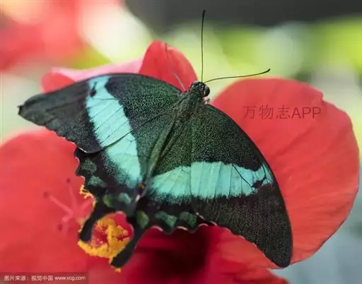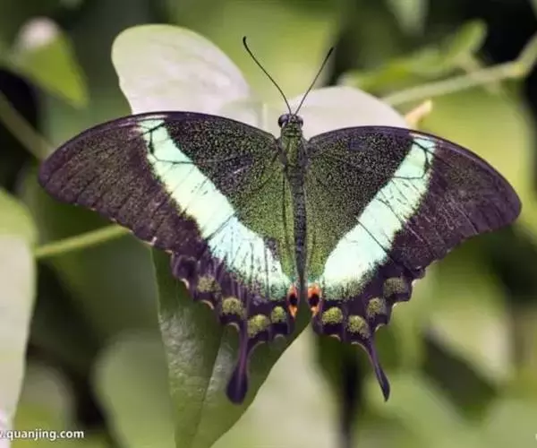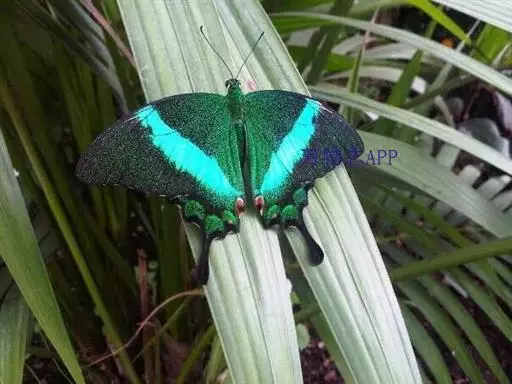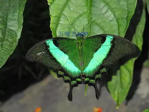 巴黎翠凤蝶中型凤蝶,躯体黑褐色,散布绿色亮鳞。后翅M3脉端有一明显叶状尾突。翅背面底色黑褐色,密布…