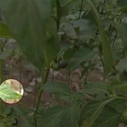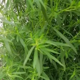 粉末特征:1、叶上表皮细胞垂周壁平直,下表皮细胞垂周壁波状弯曲,均有不定式气孔。2、胞果表面观:果皮薄膜状,表面皱缩,细胞轮廓不清。3、种皮表皮细胞栅状,棕色。4、花冠裂片薄壁细胞含草酸钙砂晶。5、柱头细胞多数是长乳突状。6、花粉粒圆球形,直径约20μm,表面隐约可见散孔点。7、枝端尖刺,由众多端尖的薄壁细胞组成。