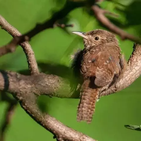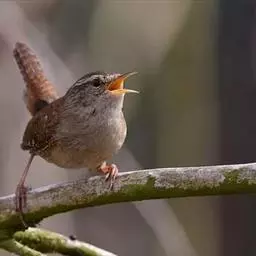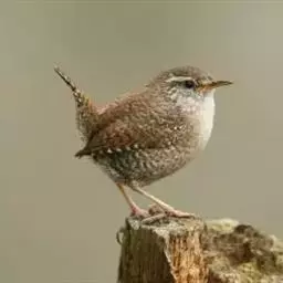 冬鹪鹩(学名:Troglodytes troglodytes)是一种小型鸣禽,原产于北美的冬鹪鹩,传入旧大陆后简称鹪鹩。有44个亚种,广泛分布于北半球。成鸟体长9 -10厘米,翼展13-17 厘米,体重8-13克。通体褐或棕褐色,具众多的黑褐色细横斑。飞羽黑褐色,外侧的5枚初级飞羽外翈具10-11条棕黄白色横斑,极为明显。尾较短而狭,栖止时尾常常高高举起,鸣管结构及鸣肌复杂,善于鸣啭,叫声多变悦耳;鸣唱时呈仰首翘尾之姿,鸣声清脆响亮。离趾型足,趾三前一后,后趾与中趾等长;腿细弱,跗跖后缘鳞片常愈合为整块鳞板;雀腭型头骨。