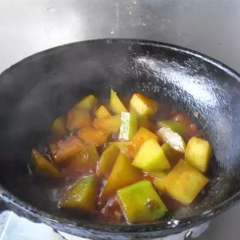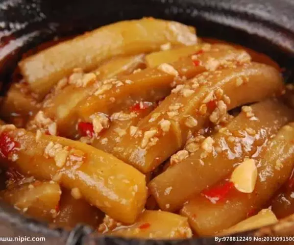 10.把所有材料倒入砂锅中,焖至茄条软烂 ;