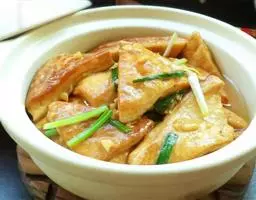 • 豆腐煲是一道美味可口的名肴,属于粤菜系。主料:北豆腐、蟹味菇、瑶柱、鲜茶树菇