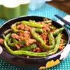 6. 倒入肉泥改大火翻炒,加入豆角翻炒;