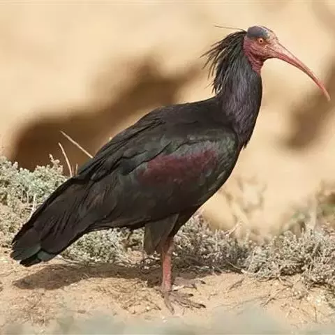隐鹮是栖息在荒芜、半沙漠或岩石环境的一种朱鹭。体长70-80厘米,身体呈光泽黑色,红色的面部及头部…