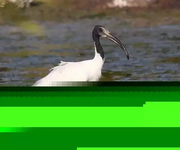 圣鹮头、颈黑色,身体白色,初级和次级飞羽尖端黑色。喙长且厚、黑色下弯,跗蹠与趾黑色。…