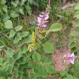小灌木,高50-80cm,罕更高。茎直立,小枝被银白色丁字毛。叶互生;叶柄长1.3-2.5cm;托叶小,锥形;奇数羽状复叶,长2.5-5cm,小叶对生,小叶9-13片,叶片卵状长圆形或倒卵状椭圆形,长1.5-3cm,宽0.5-1.5cm,先端钝圆,有小尖,基部楔形,全缘,两面被丁字毛,叶干时常带蓝色。总状花序长2.5-5cm,通常腋生,远较叶为短,花疏生,有花约20朵;萼钟形,斜形,被银白色丁字毛,5齿裂;花冠蝶形,红黄色,长约4mm,旗瓣宽卵形至长圆形,外面有毛,翼瓣卵圆形,微与龙骨瓣相连,龙骨瓣匙形,爪上有距;雄蕊10,二体;子房无柄,花柱短,内弯,柱头头状。荚果线状圆柱形,直或稍弯,长约2.5-3cm,种子间有缢缩,外形似串珠,有毛或无毛。有种子5-10颗。种子长圆形,长约1.5mm。花期5-10月,果期6-11月。