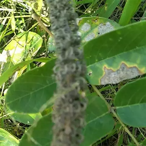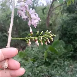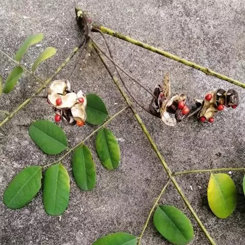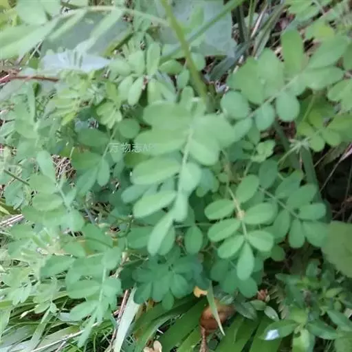药材性状:枝条圆柱形,有纵棱,被白色丁字毛。羽状复叶互生,小叶9-13,常脱落,小叶倒卵状矩圆形或倒卵形,长1-2cm,宽0.5-1.5cm,先端钝,有短尖,基部近圆形,两面被丁字毛,叶柄、叶轴与小叶柄均被白色丁字毛。气微,味微苦。