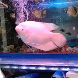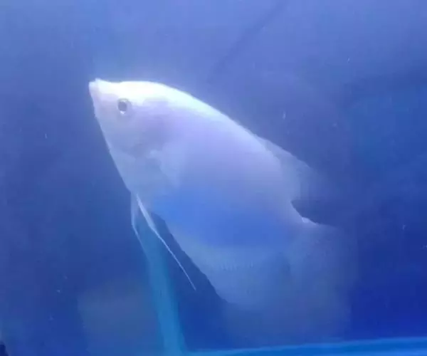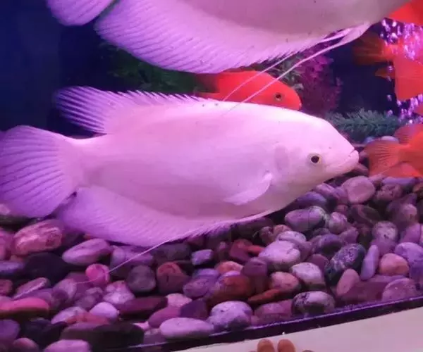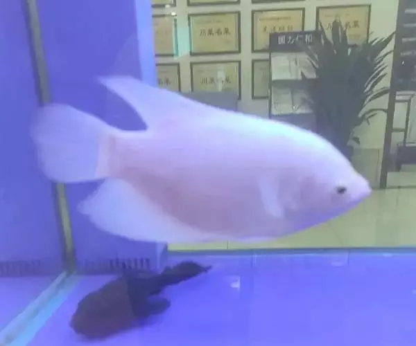 招财鱼,Osphronemus goramy (Lacepède, 1801),又名战船、长丝鲈,原产地越南、泰国、马来西亚等,是鲈形目(Perciformes)攀鲈亚目(Anabantoidei)丝足鲈科 (Osphronemidae)丝足鲈属的一种鱼类。该科的鱼一般体型都比较小,但招财是该科鱼中的巨人。成鱼体长20~69厘米,椭圆形。体色灰褐,腹鳍变异为两根长长的丝鳍,各鳍浅红色。饲养水温22~32摄氏度,水质要求不严,易饲养。繁殖水温26~27摄氏度雄鱼背鳍末梢尖长,属泡沫卵生鱼类。在水族箱水面上漂浮几颗水草,将一对亲鱼放入,雄鱼在水面上突出大量泡沫,并将受精卵突入泡沫中孵化。雌鱼每次产卵500~1000粒。具有很强的领域性,会攻击其他鱼类,不推荐与其他鱼类混养。