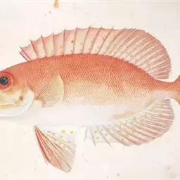 体长10~15cm,椭圆形。体色灰褐,腹鳍变异为两根长长的丝鳍,各鳍浅红色。