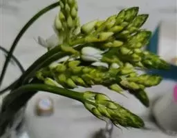 白美人(White Beauty),白色系品种,特点是叶片条形,肉质,开纯白色葡萄状小花,花朵密生成串,与深绿色的花杆和绿叶形成鲜明对照。