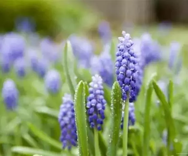 葡萄风信子是观赏性较强的多年生花卉,它植株低矮整齐,花序端庄,花姿美丽,色彩绚丽,在光洁鲜嫩的绿叶衬托下,恬静典雅,是早春开花的著名多年生花卉。
