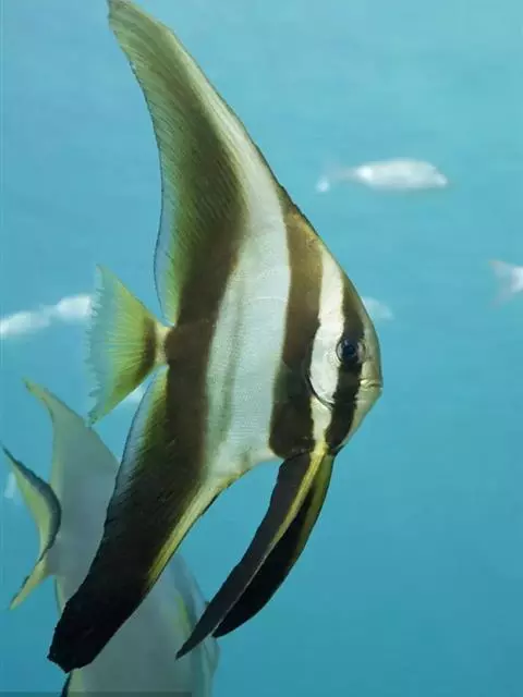 眼斑双锯鱼,背鳍硬棘被橘黄色斑块分割为5-6枚,第4枚最长,约为头长的2.1-2.9倍。胸鳍、臀鳍…