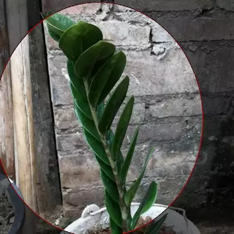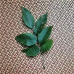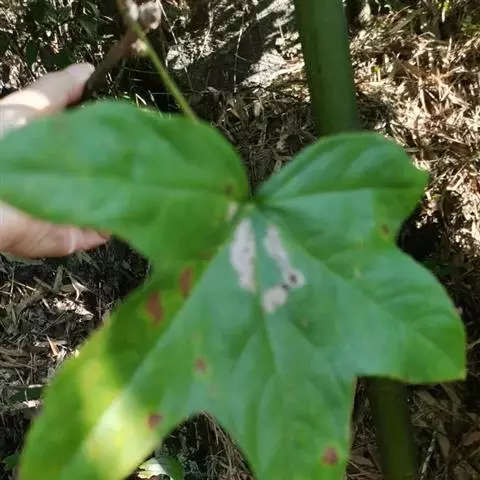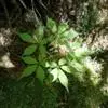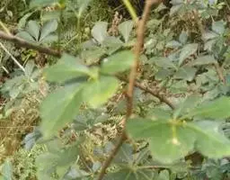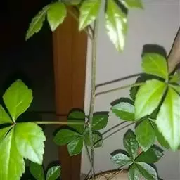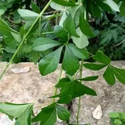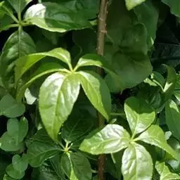 叶互生,掌状复叶,小叶5枚,线状披针形,近先端边缘有疏细锯齿,革质,叶面具有金黄色斑纹。